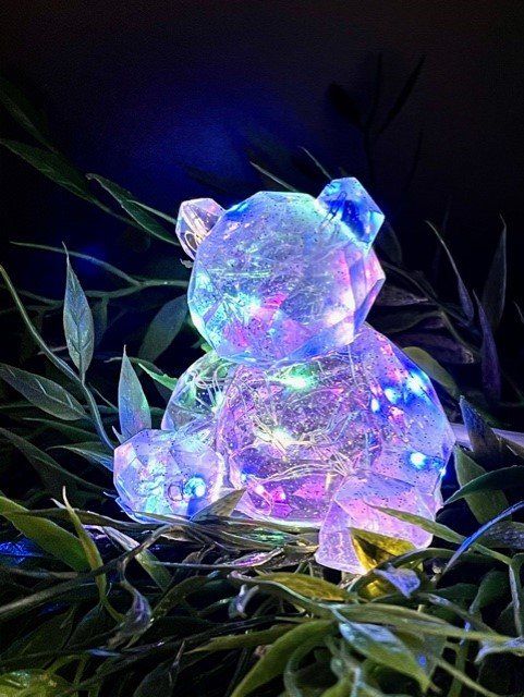 These miniature bears are handmade from good quality resin and have led fairy lights embedded inside. They are battery operated and come supplied with their own set of 2x 2032 batteries. They can be customised to suit your needs.